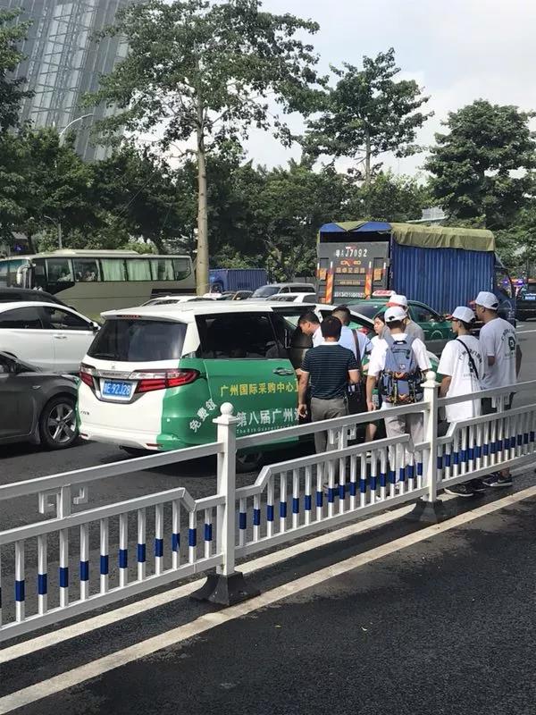 展会早已安排工作人员在地铁口、路边上指引接待来宾