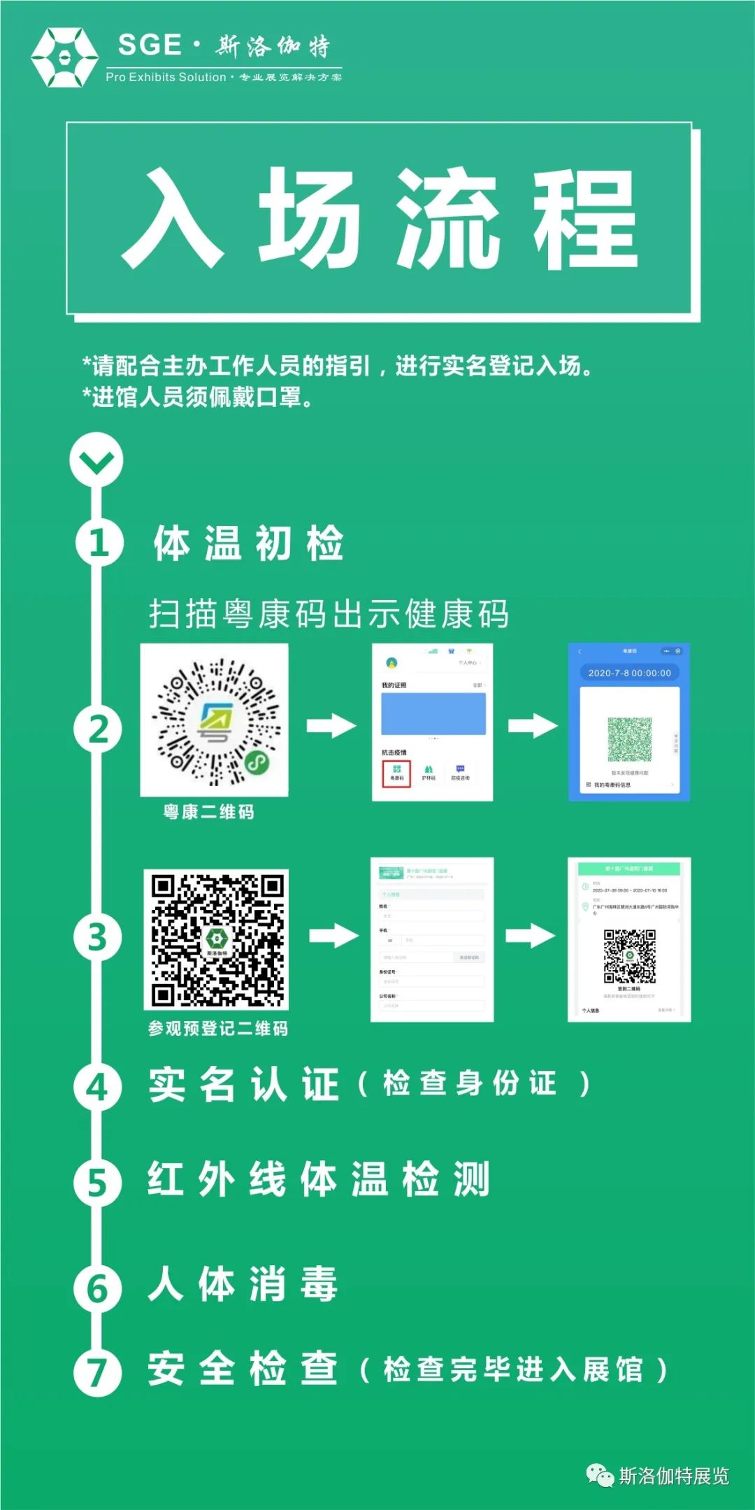 本届抵达会场的观众,我们将实行“一码一证一票”方式入场,即健康码、身份证、观众预登记电子票。请各位采购买家提前扫码获取,并配戴一次性医用口罩前往。我们展会现场设置了一系列防控措施,请大家配合查阅。
