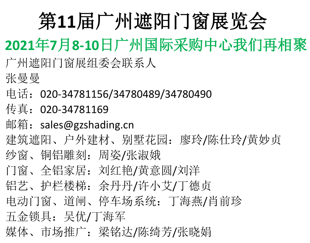 汇聚遮阳门窗、电动门窗、全铝家居、户外家具、五金锁具、护栏楼梯、铜铝雕刻等专业盛会,专业打造贸易交流平台,请认准我们这个团队!我们准备好了,招展正式开始,等您来!