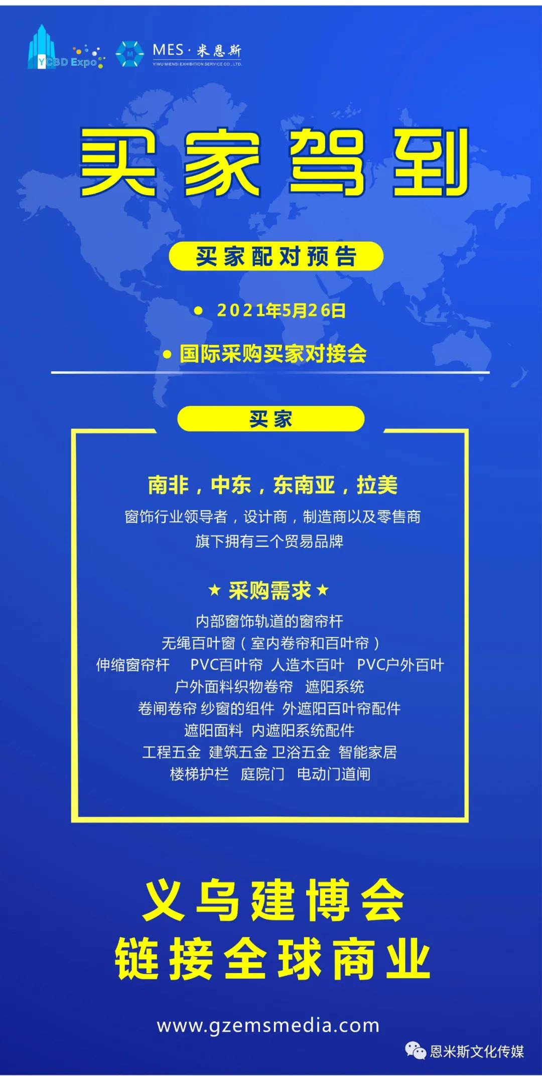 义乌建博会战略合作伙伴---博裕展览团队已经联系了全球实力买家,买家对于特殊时期新的贸易解决方案也表现出非常高的信心和兴趣,纷纷报名参与配对。义乌市博裕会展服务有限公司是一家专业从事国际外商采购引资工作的会展机构,中国国际进口博览会境外招商合作单位,拥有庞大的国际采购商资源。
